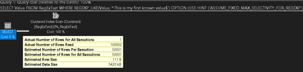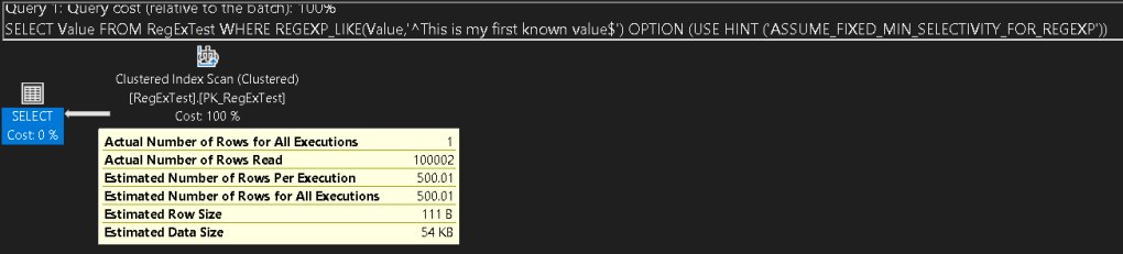 OPTION (USE HINT ('ASSUME_FIXED_MIN_SELECTIVITY_FOR_REGEXP'));