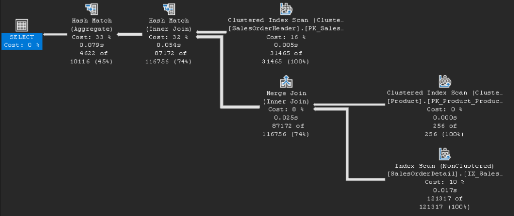 And now this returns 121,317 rows, and you can see that that matches the 121,317 rows in SalesOrderDetail.